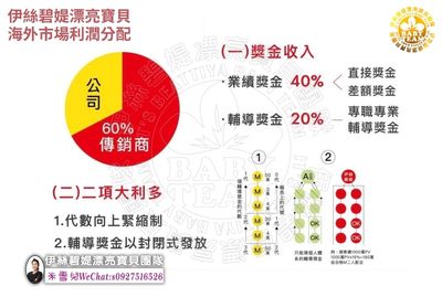 公司将营业额拨出60%作为经营者分红的依据,分红内容非常丰富,所以每位投入经营的伙伴都可以收到预期以外的收入,目前在保养品界是非常受到瞩目的销售模式,如果你非常有兴趣,欢迎随时与我们联络.